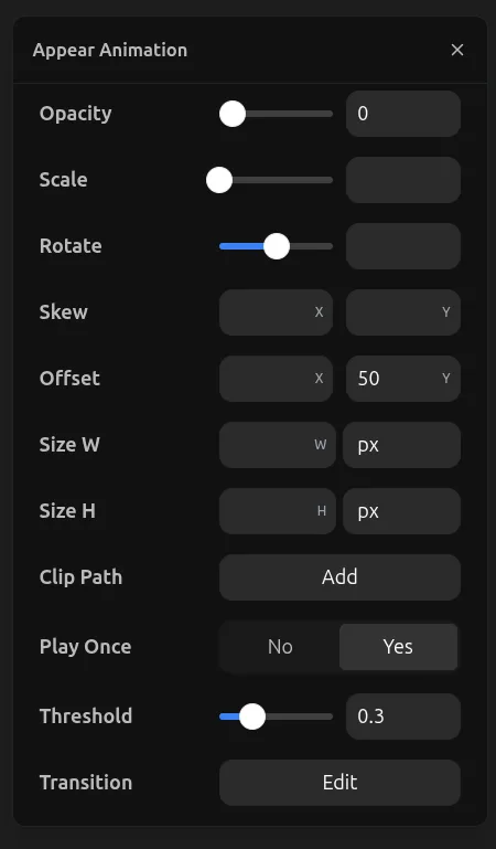 Animates elements when they scroll into the viewport. Perfect for entrance effects that reveal content as users scroll down the page.
