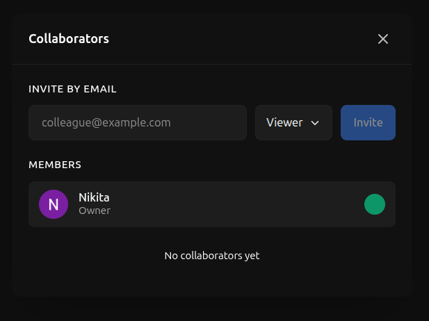 To invite collaborators, click on the + button in the bottom left menu.