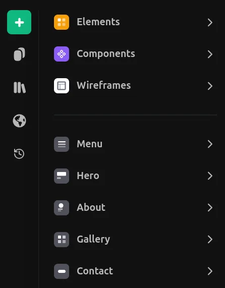 Click the green + button in the left panel to open the Insert Menu.