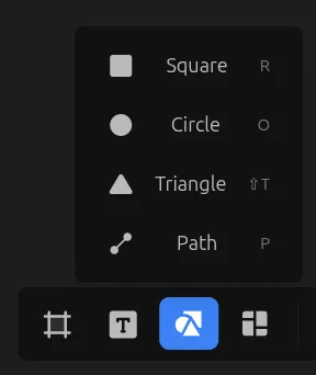Select a shape tool from the bottom toolbar, then click and drag on the canvas to draw.