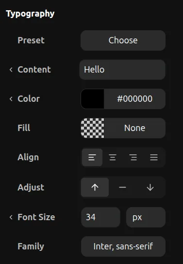 Select a text element to access the Typography panel in the right toolbar where you can change various text styles.