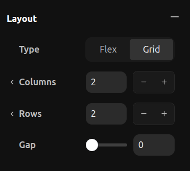 Grid works exactly like CSS Grid. It arranges child elements in a two-dimensional layout with rows and columns.