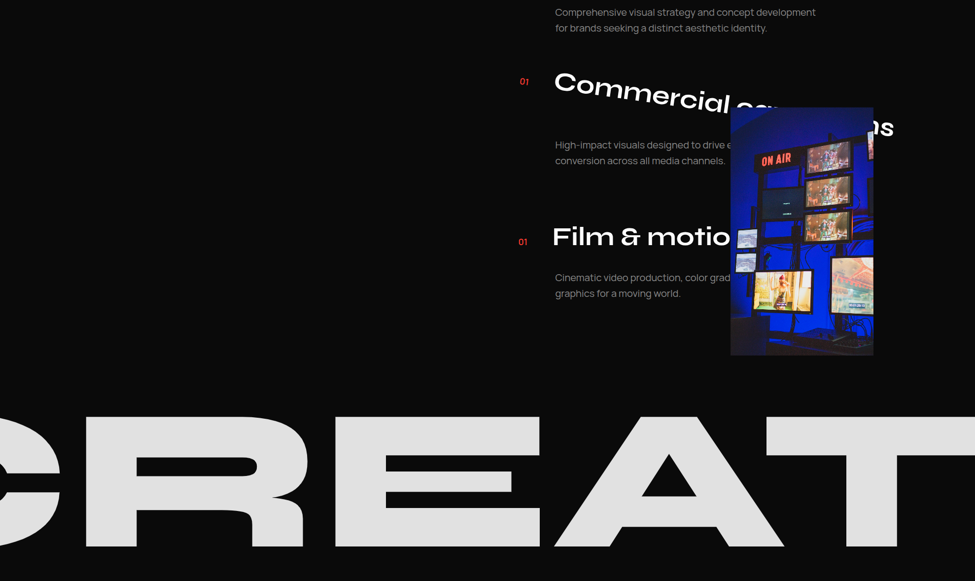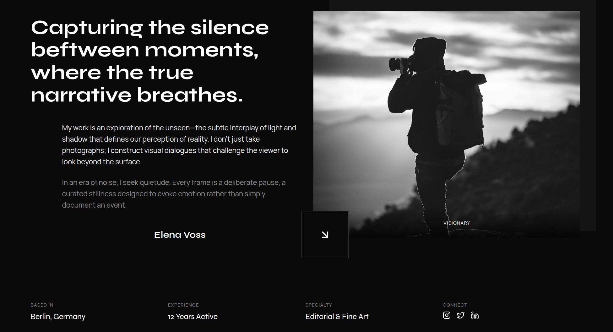 Artistic photography portfolio with full-screen imagery and bold overlapping typography.