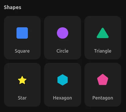 You can find pre-made shapes in the Elements section of the Insert Menu. These include rectangles, circles, triangles, and more.
