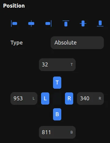 Position pinning controls how an element is anchored to its parent's edges. Each side (Left, Top, Right, Bottom) can be pinned independently.